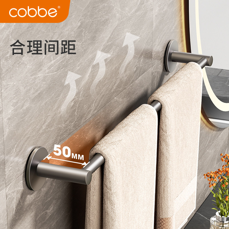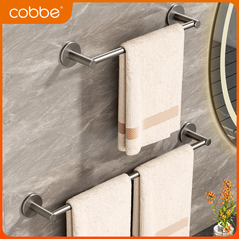 Cabbé Free Punching Gun Grey Single Pole Towel Rod Space Aluminum Bathroom Bath Towel Rack Toilet Fur Rack Hanging Pole-Taobao