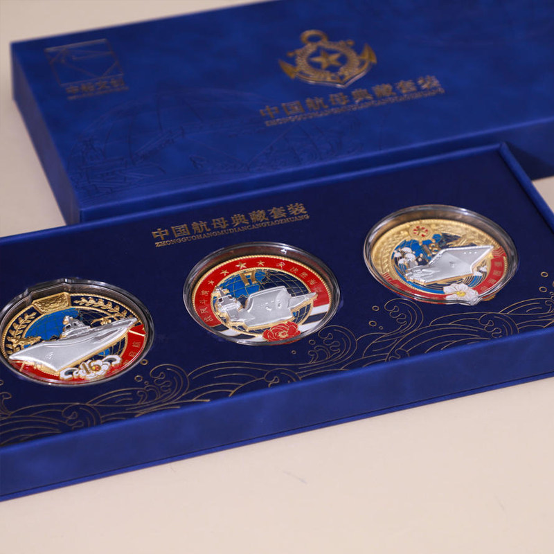 China Aircraft Carrier Formation Memorial Chapter Collection of the 3 largest aircraft carrier Memorial Coin Collection Badge pure silver coin