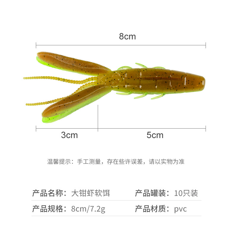 1#大钳虾绿棕色10条 2#大钳虾红色10条 3#大钳虾蓝色10条 4#大钳虾粉色10条 5#大钳虾夜光10条 6#大钳