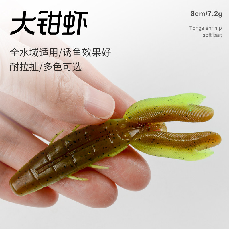 Large Pincer Shrimp Luja Black Pit Soft Bait False Bait Disorder Shrimp Type Soft Worm Fishing Bass Fish Mandarin Fish Pour Fishing Lead Head Hook Nedershrimp