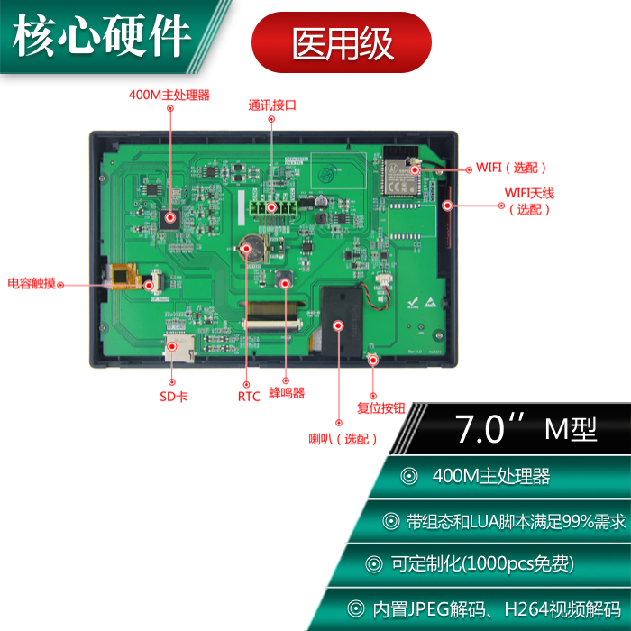 7 inch 1024*600 Wifi Guangzhou Color M Series Medical Class 86 boxes Serial port screen