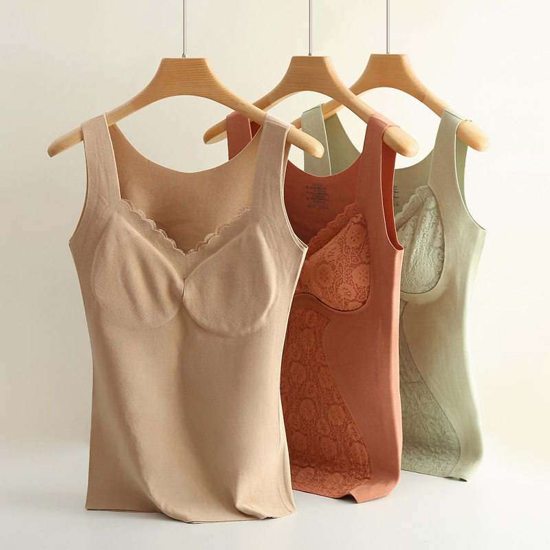 Peace of mind Zhenxiang de velvet warm vest women's seamless lace latex chest pad slim fit heating elastic bottoming underwear
