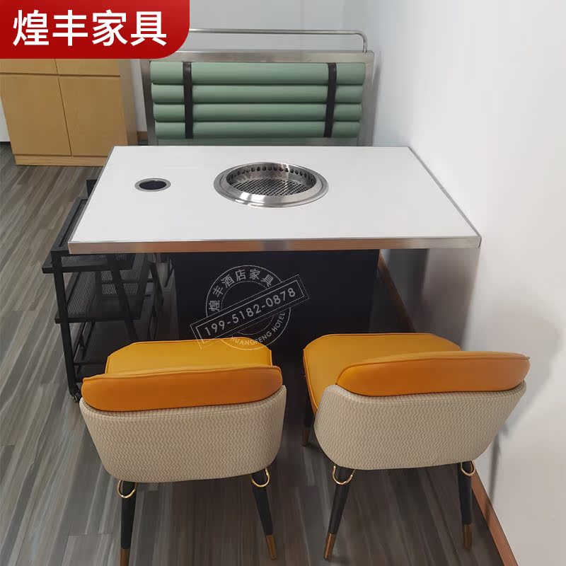 Marble smoke-free hot pot table commercial electromagnetic oven roast cookup hotels seabed heating boiler table and chair combination