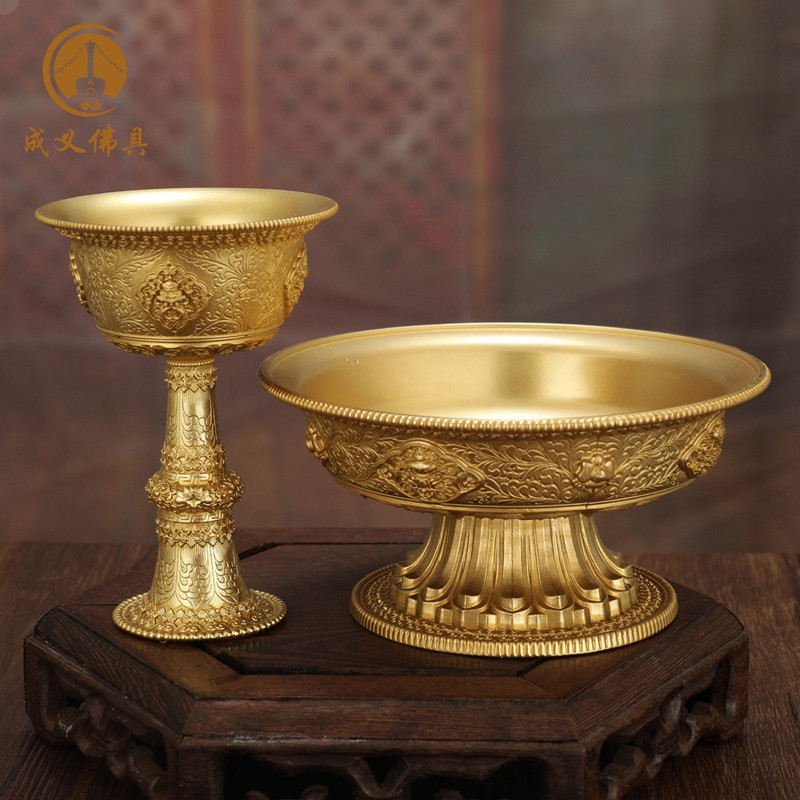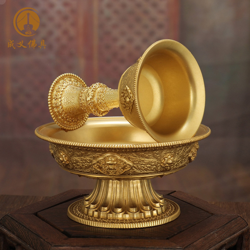 For the guardian cup for the cup pure copper gilt carved eight auspicious ornaments home Tibetan ethnic supplies for the protection cup
