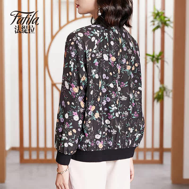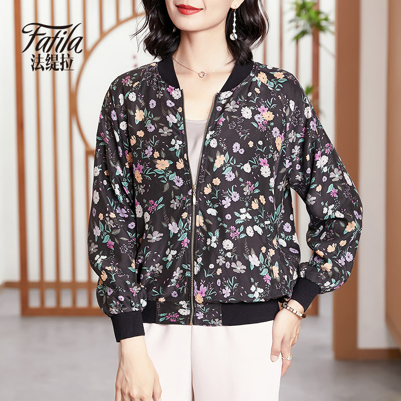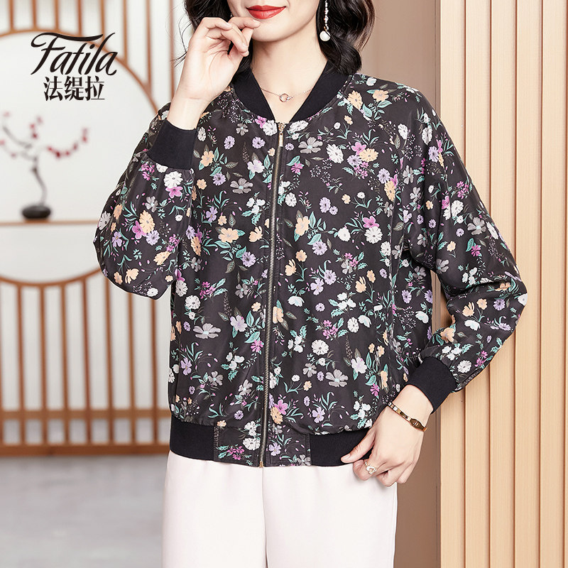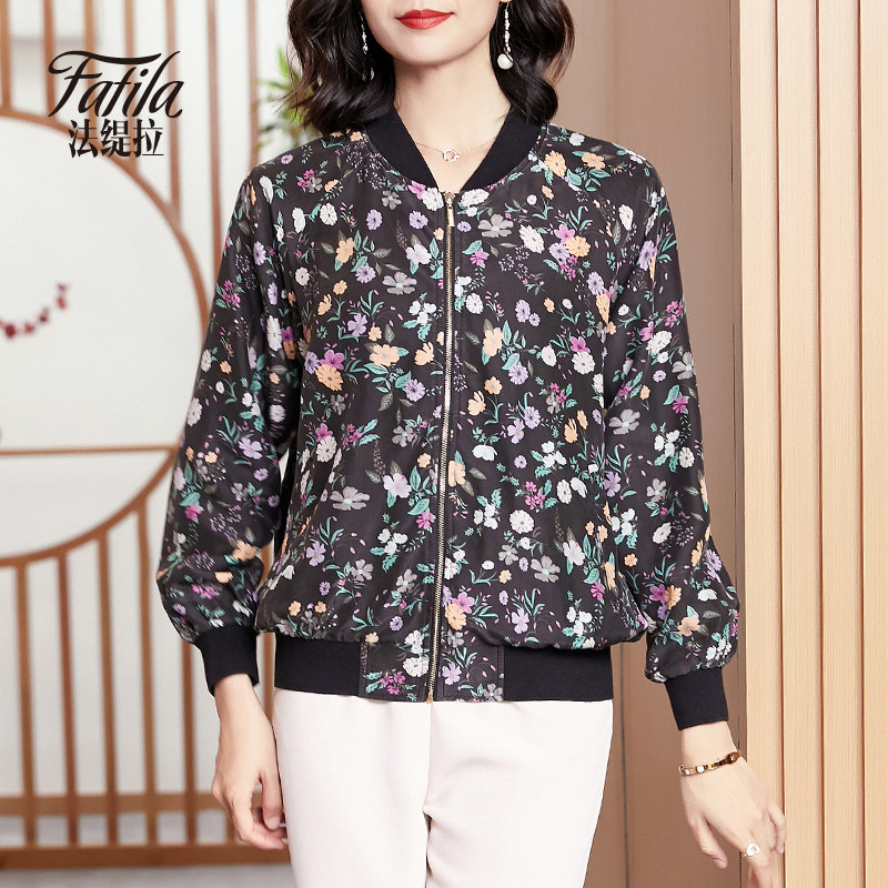 Middle-aged Mom Silk Costume Short Spring and Autumn New Loose Large Costume Baseball Clothes Thin Clothes