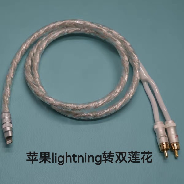 Fever silver plated Lightning to double lotus audio line HiFi Apple mobile phone to 2RCA joint amplification sound