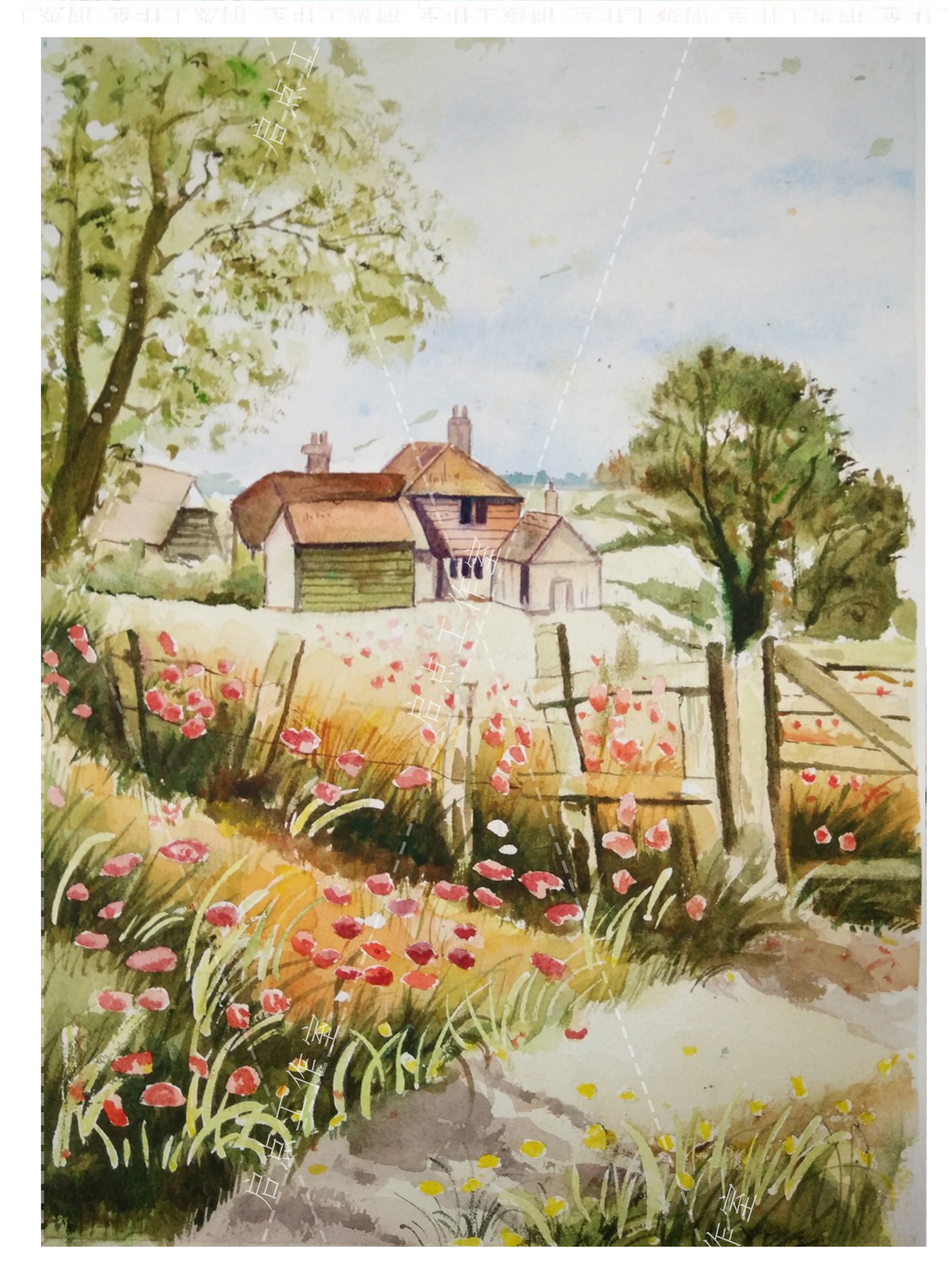 Generation Painting Handmade Watercolor Painting Landscape Architecture Character Color Water Pink lead oil painting Pink Photo Portrait Sketching-Taobao
