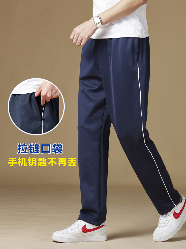 School uniform pants men and women loose straight tube navy blue middle school students one bar blue primary school students two bars spring and autumn school pants