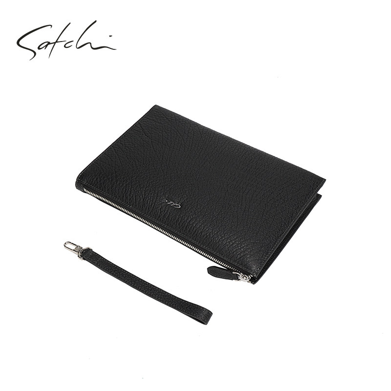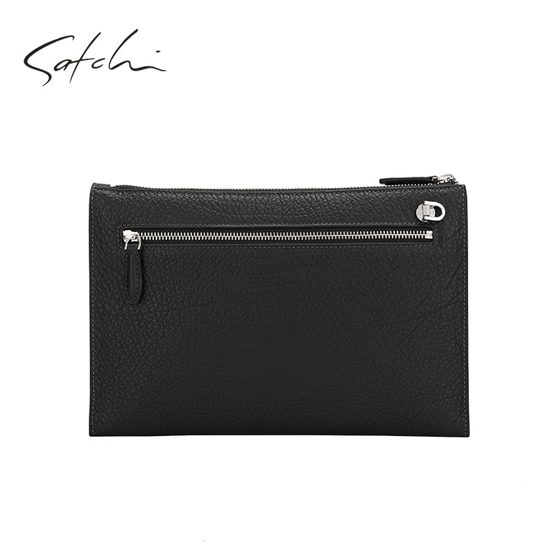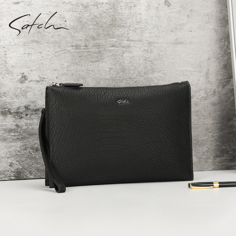 SATCHI Sachchi Men's handbag genuine leather large-capacity handbag business letter Enveloping Bull Leather Light Lavish Grip Bag-Taobao