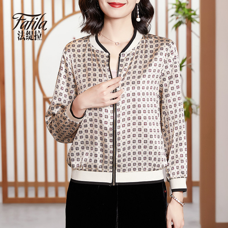 Printing silk coat female short spring and autumn new long sleeve jacket thin fashion baseball suit female
