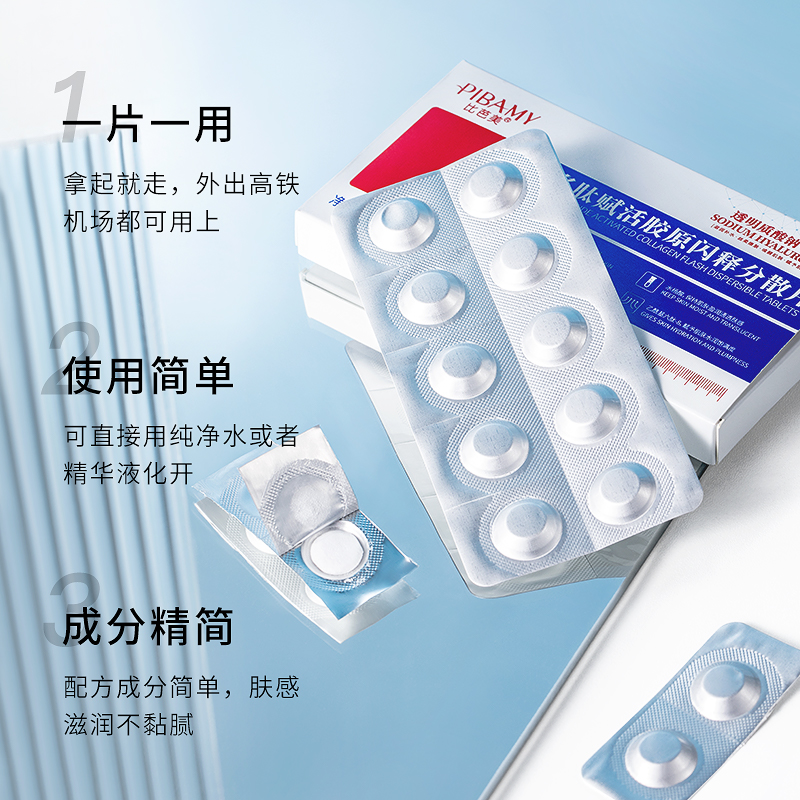 Bibamei Polypeptide Revitalizing Collagen Flash Release Dispersive Tablets Freeze-dried Powder Essence Elastic Rejuvenation Essence Moisturizing Brightening
