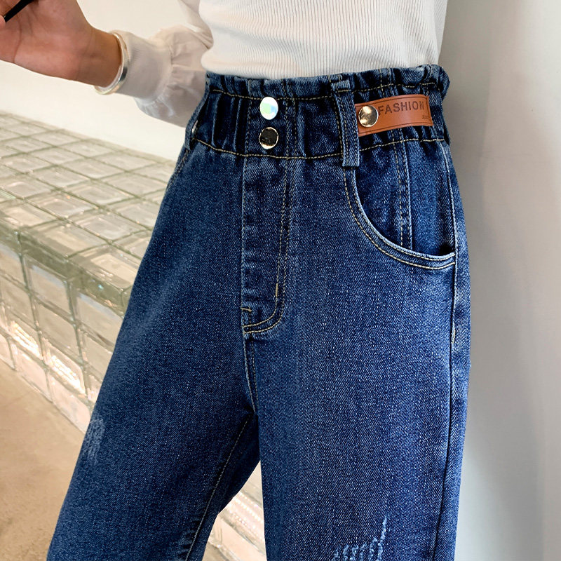 Children's clothes girl jeans 2022 new autumn dress girl Han edition thin foot pants beam pants