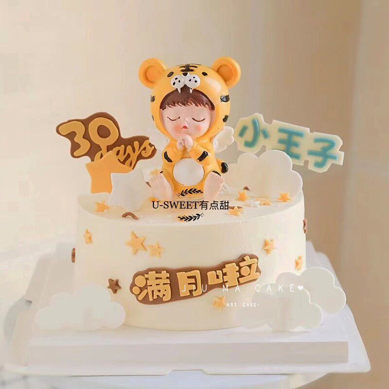 Tiger Baby Cake Decorated Little Tiger Fittings for a 100-day Birthday Party Dessert