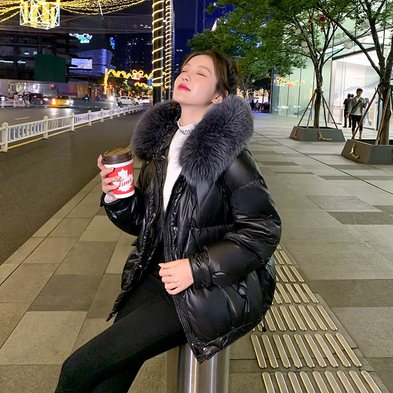 90 white duck down short down jacket women's 2022 new winter Korean style large fur collar fashion thickened black coat
