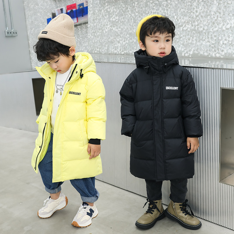Children's down clothes 2023 new boy girl baby over knee thickening with long style foreign air even hat winter clothing jacket-Taobao