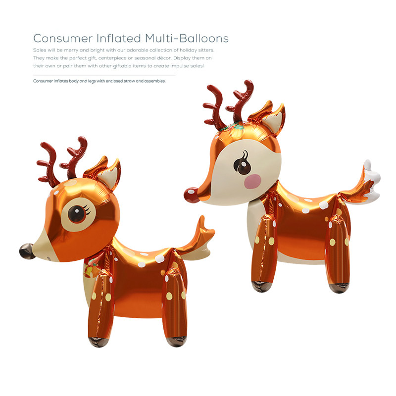Window decoration party props toys photography balloon 4D stereo deer shaped cartoon aluminum film balloon