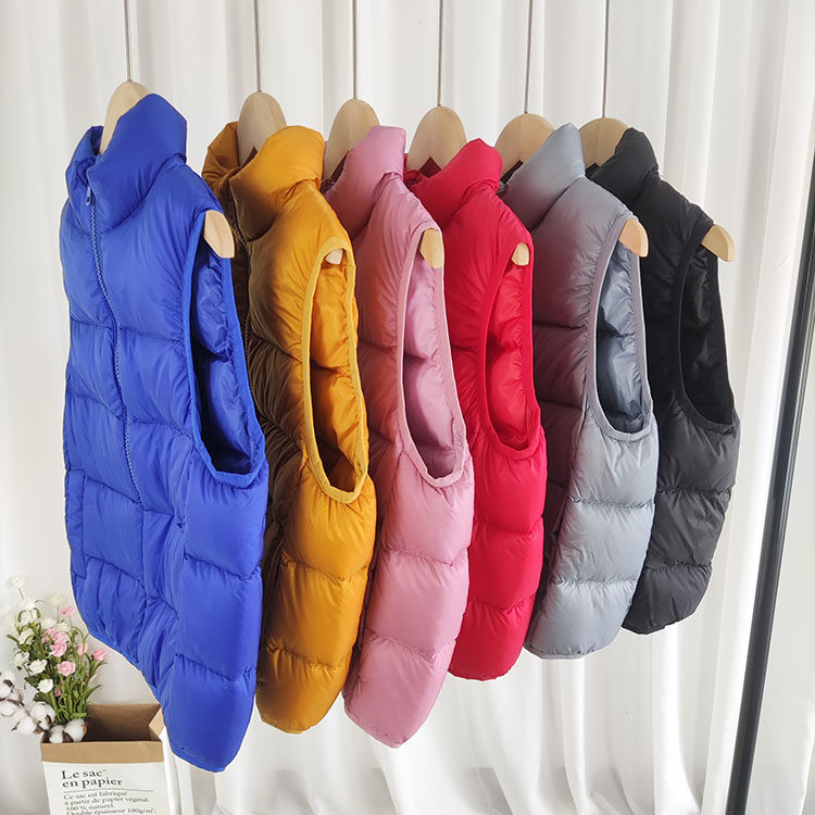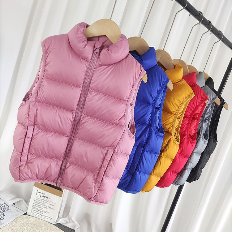 Children's down vest boys and girls middle-aged children's white duck down vest solid color thickened baby vest outer wear children's clothing
