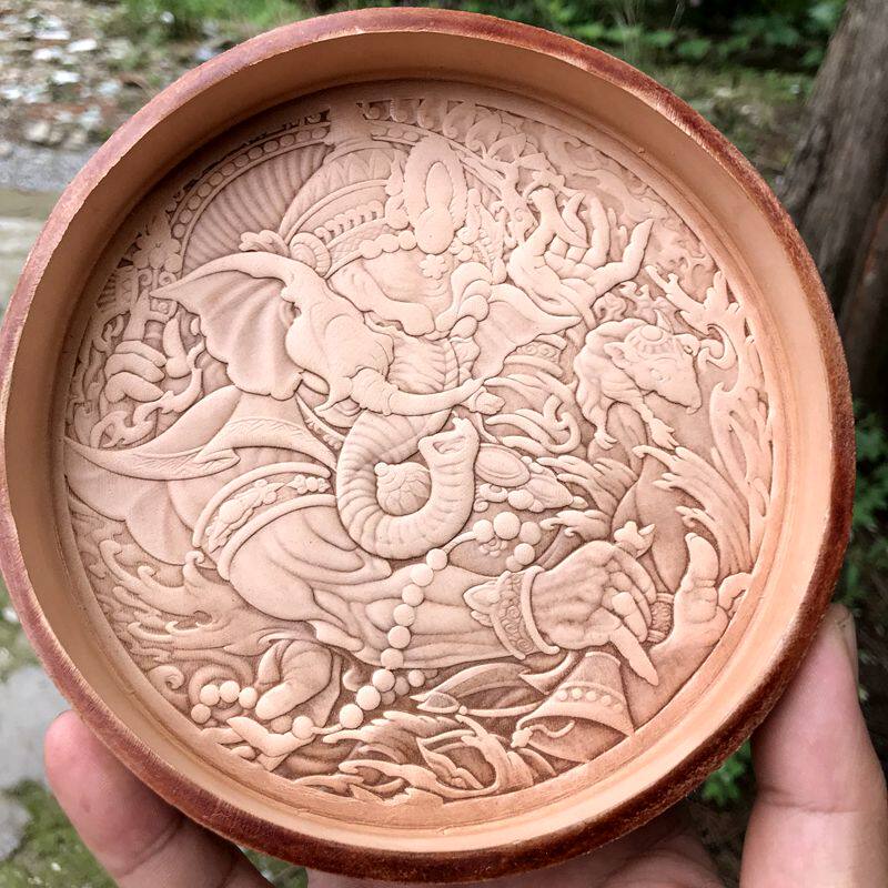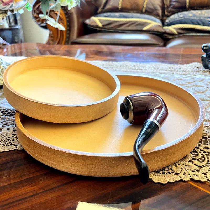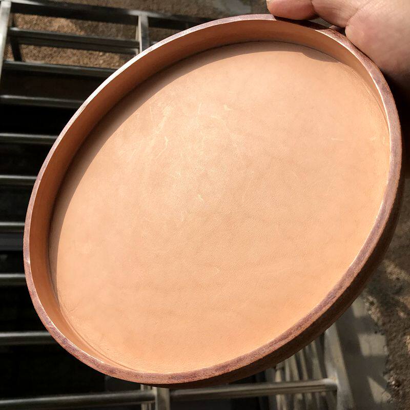 Chinese style simple round handmade head layer of cow leather dish tray Wenplay with silver decorated with tray ornament set to wake the grass pan-Taobao