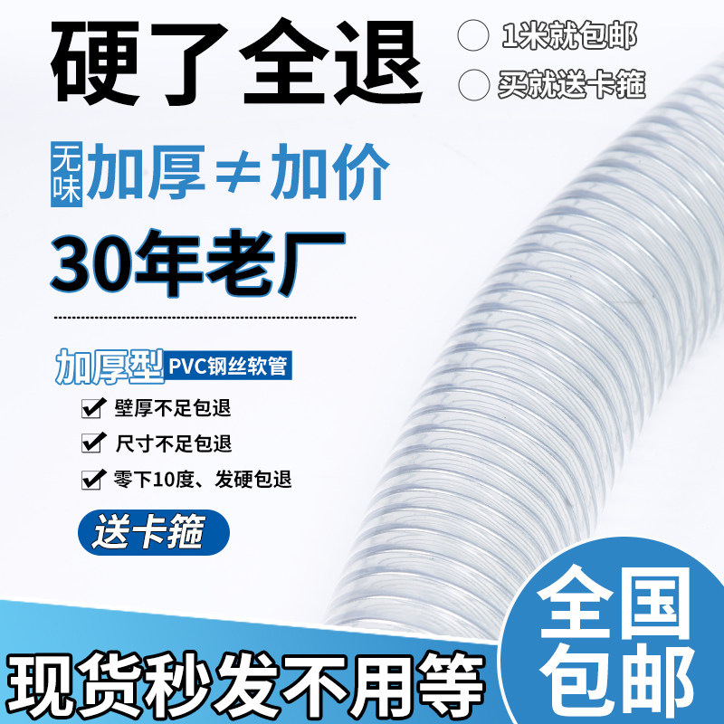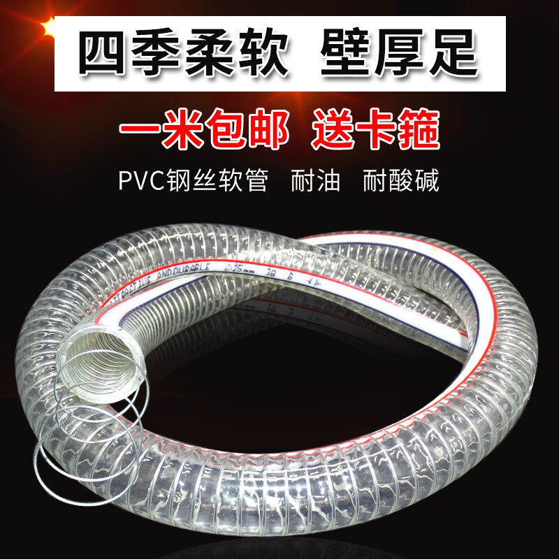 pvc steel wire hose transparent plastic high-pressure water pipe oil pipe steel wire high temperature resistant to corrosion whole roll 1 1 5 2 inches-Taobao