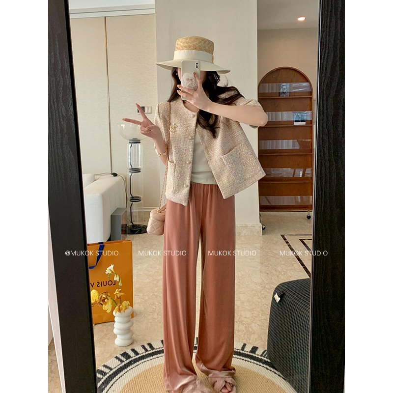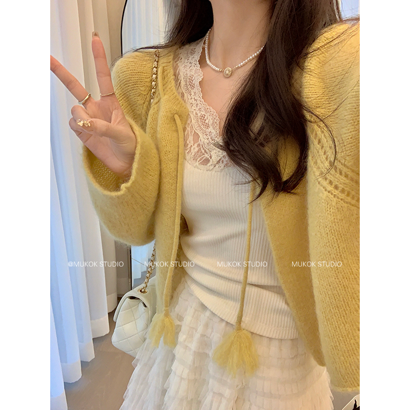 MUKOK white knitting vest woman 2022 Spring and Autumn new V - collar lace splicing high - sentiment punch blouse