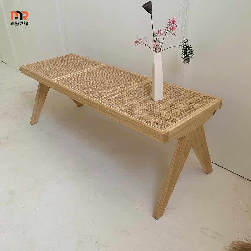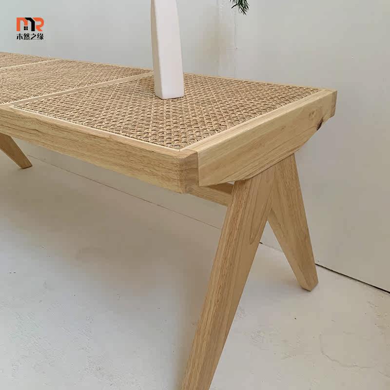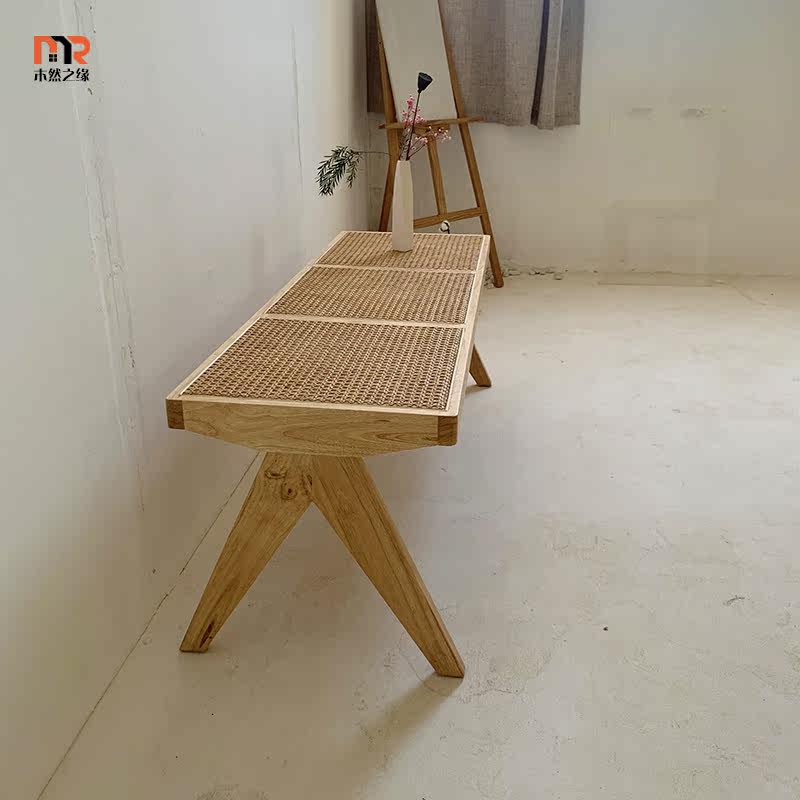 Nordic all solid wood bench home dining table stool long bench door change shoe stool simple modern rattan bed end stool