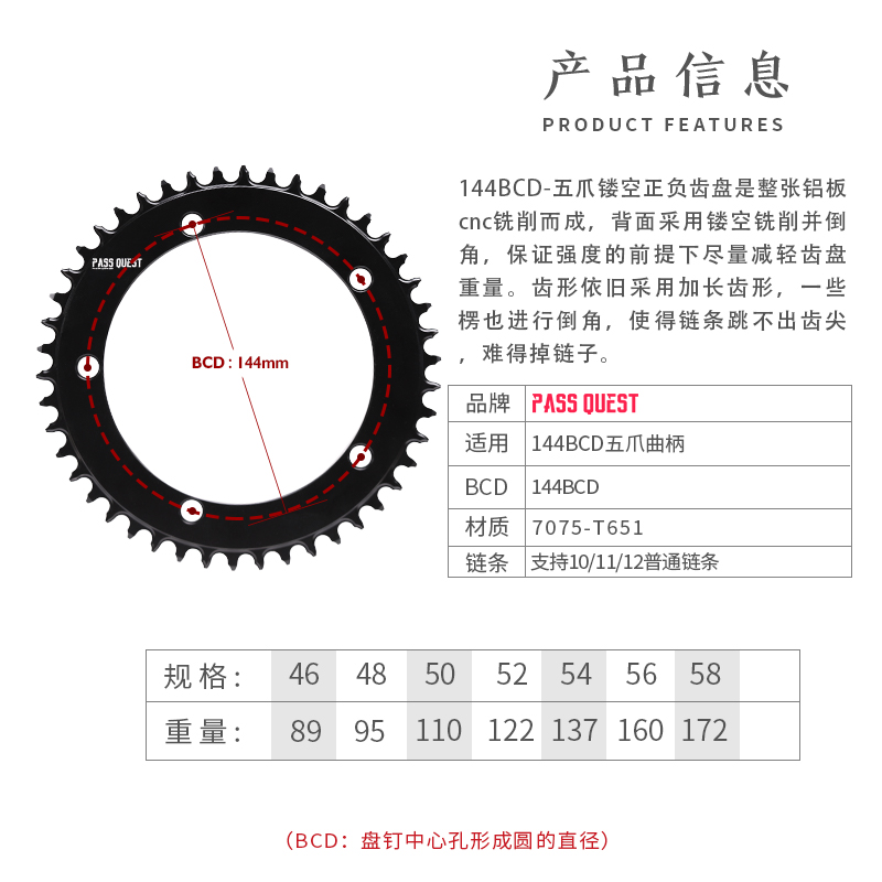 PASS QUEST 144BCD positive and negative teeth closed air disc positive and negative teeth single disc 7075-T651 tooth