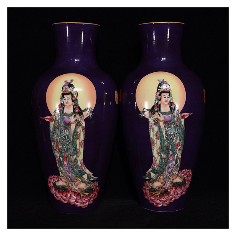 LY0758 Qingqianlong style purple glaze pastel Guanyin bottle