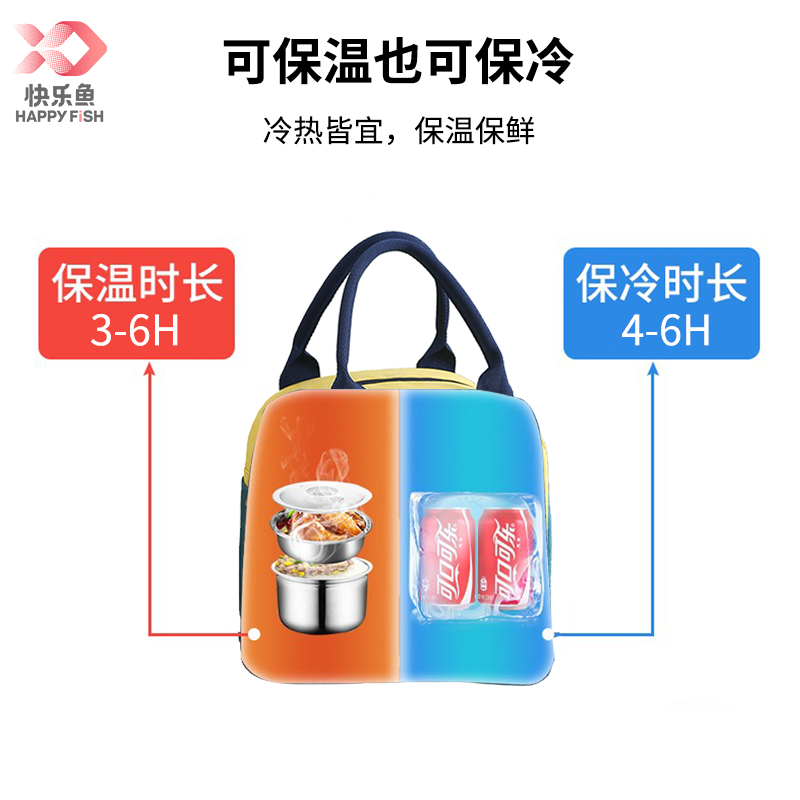Happy Fish Insulated Bag Lunch Box Carry-on Bag lunch bag Upper class family with meals students Meals Package Elementary School Students Special-Taobao