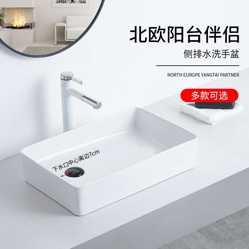 Table washing machine ceramic balcony side left and right of the washing basin household with the partial hole washing basin