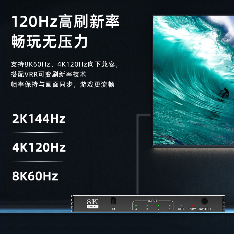 Saiki HDMI2 1 version 3 further out switcher 3 4 5 in 1 out 4K120hz8K60hz high brushed four further out switcher Synchrowire splitter PS5 pick up 8K60