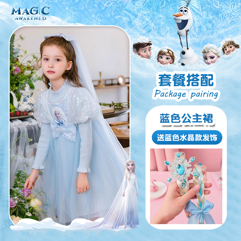 Girl Autumn Winter Elsa Princess Dresses Dresses Thickened Sweater Skirt Gown Ice Chic Edge Girl Aisha Dress-Taobao