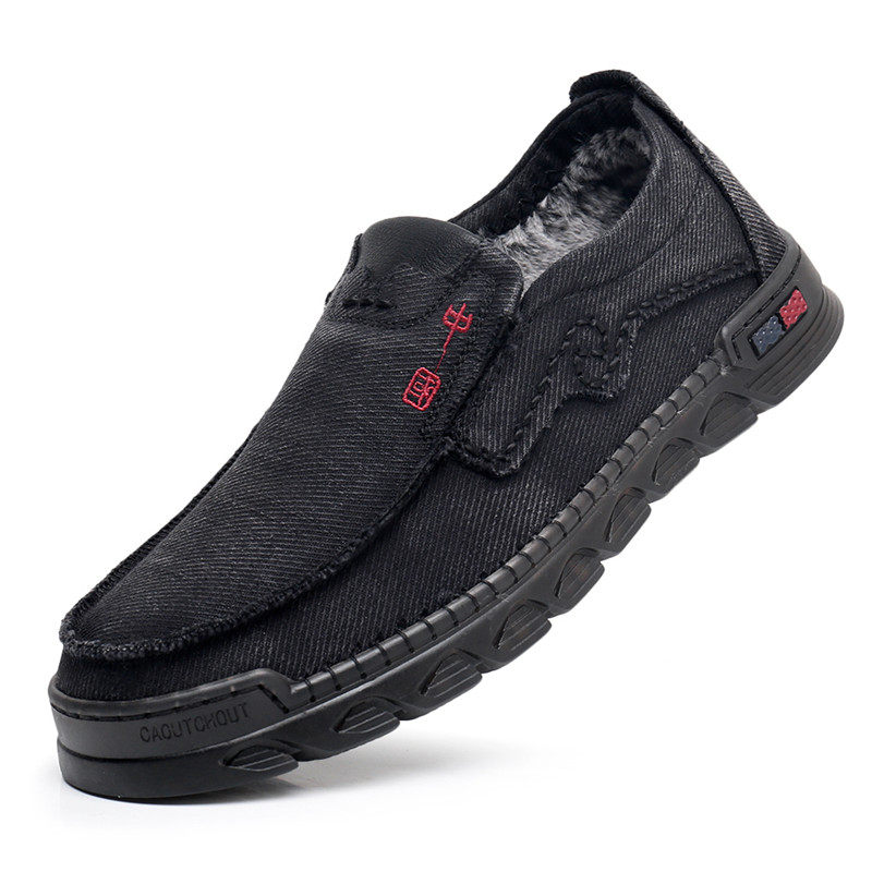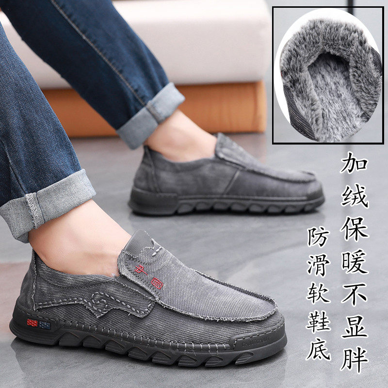 Gavelling old Beijing canvas shoes warm and anti-skid soles young daddy cotton shoes low-gang lazy shoes