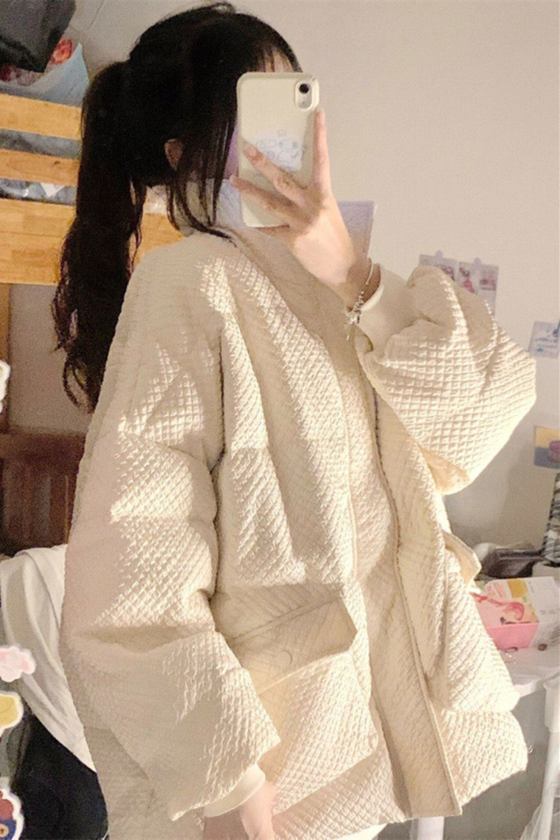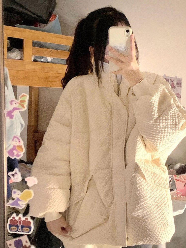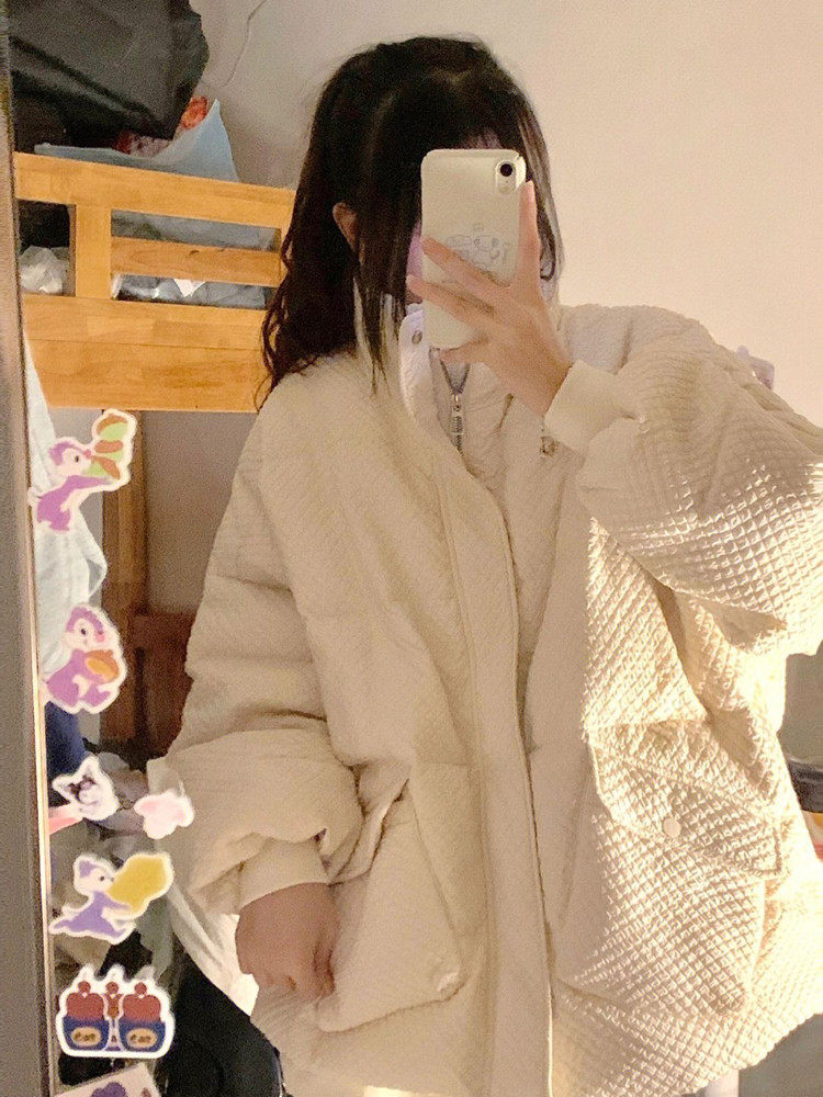 Rice white Huafg cotton dress Women 2022 New cotton padded jacket Han version loose winter thickened warm cotton coat jacket
