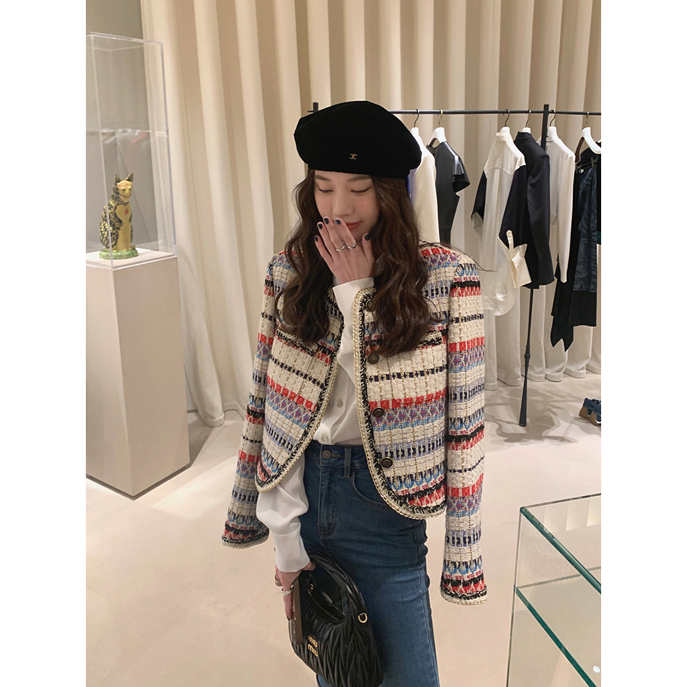 Zhang Beibei ibell (spot) autumn temperament design sense Xiaoxiang jacket collection female loose long-sleeved top