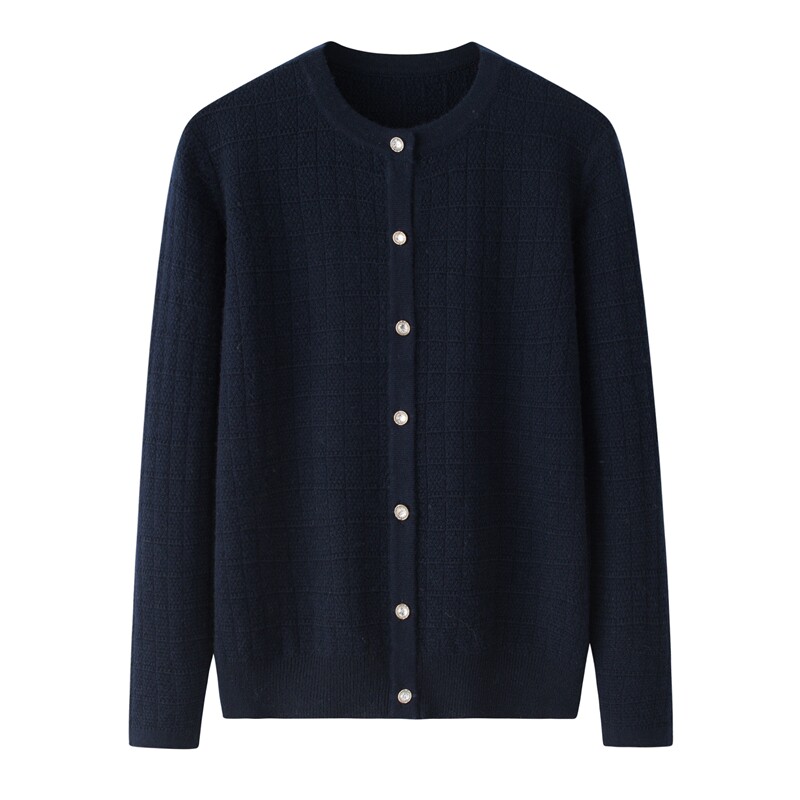 Ordos autumn and winter round neck ladies cashmere sweater cardigan pure cashmere warm long-sleeved solid color bottoming sweater