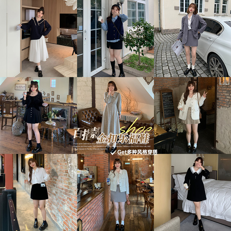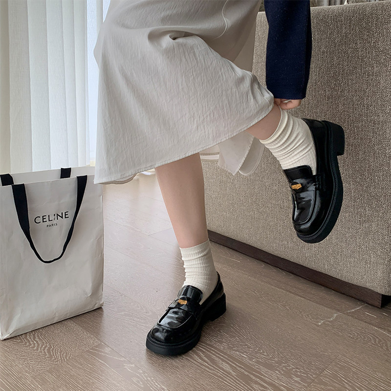 Masisi slightly fat mm thick-soled leather loafers women's autumn thick-heeled black small leather shoes retro British style single shoes
