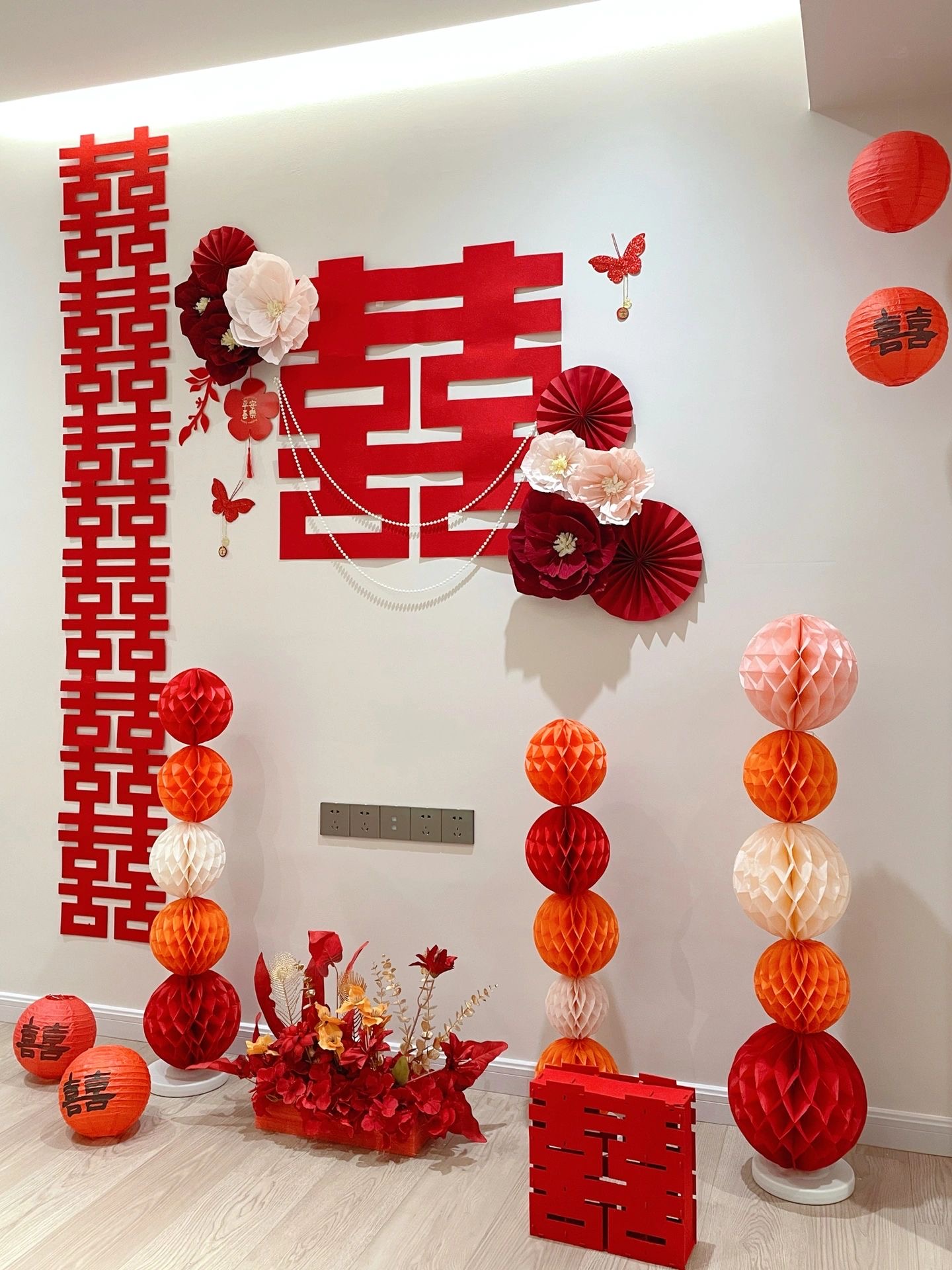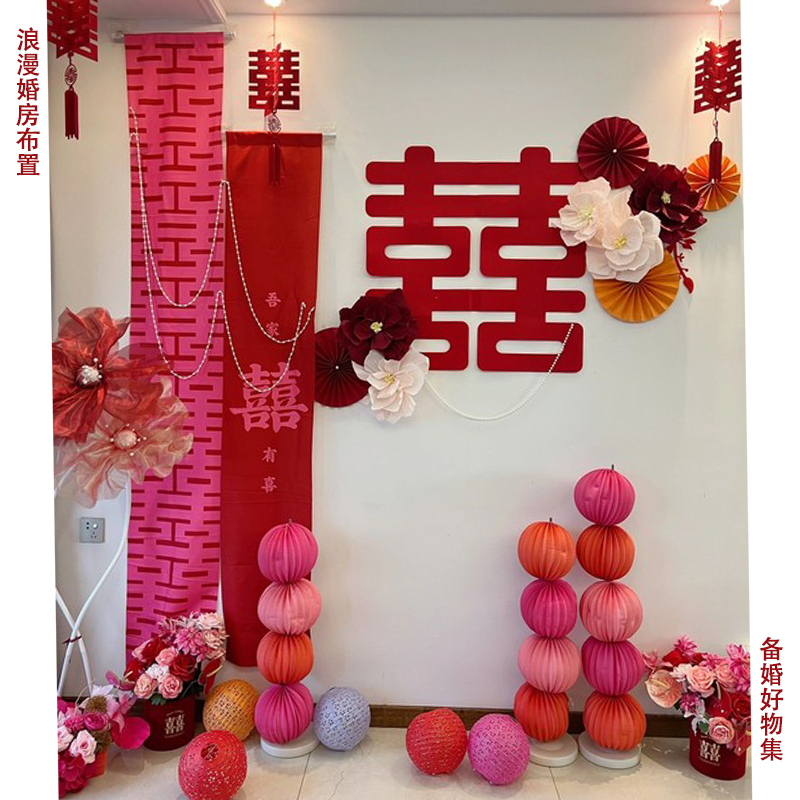 Wedding House Placement Women's Bedroom Wedding New House Decoration Bedside Festive headstock Background Wall Suit Wedding Celebration Supplies Grand-Taobao