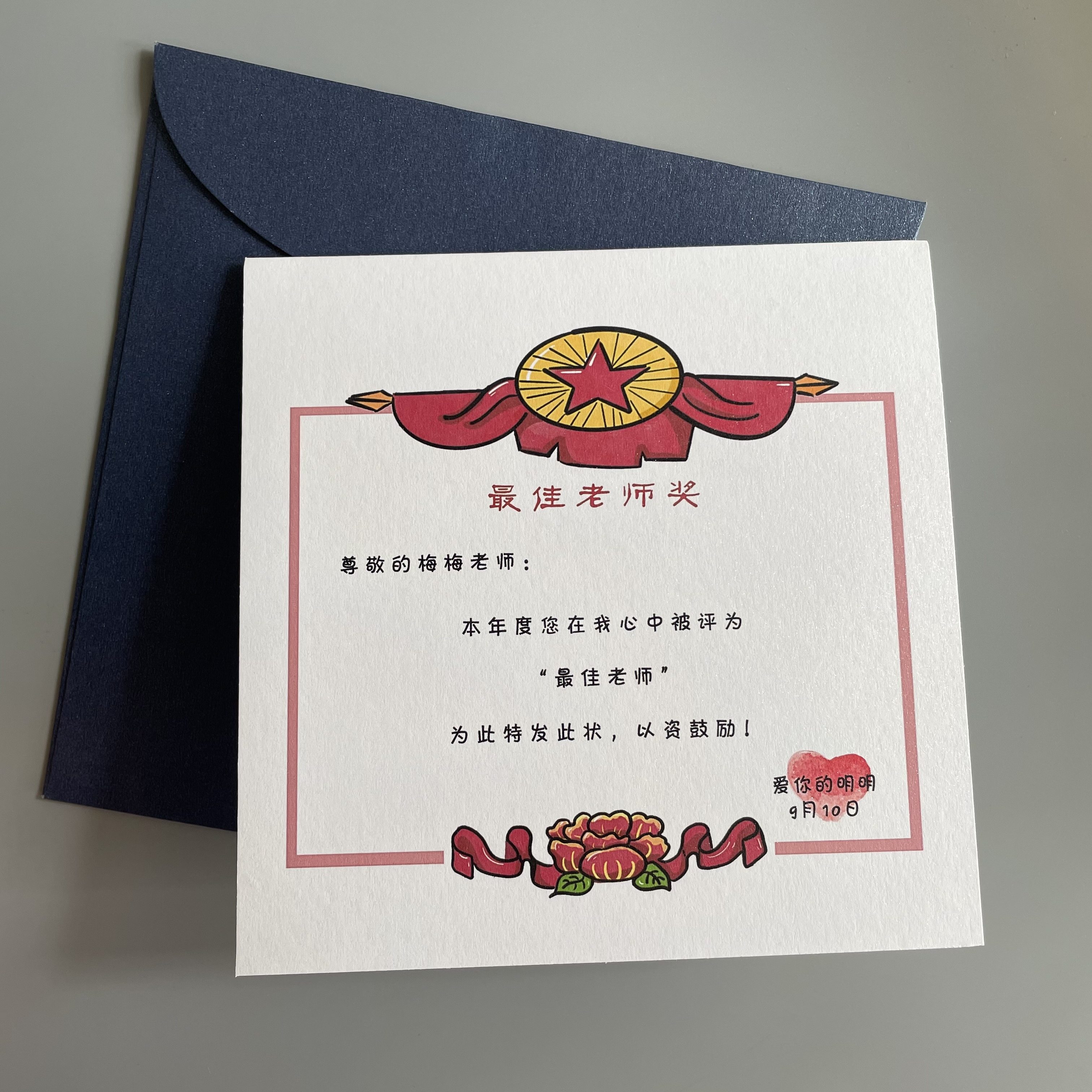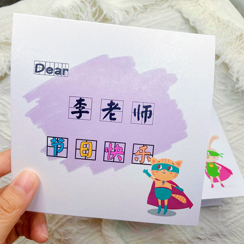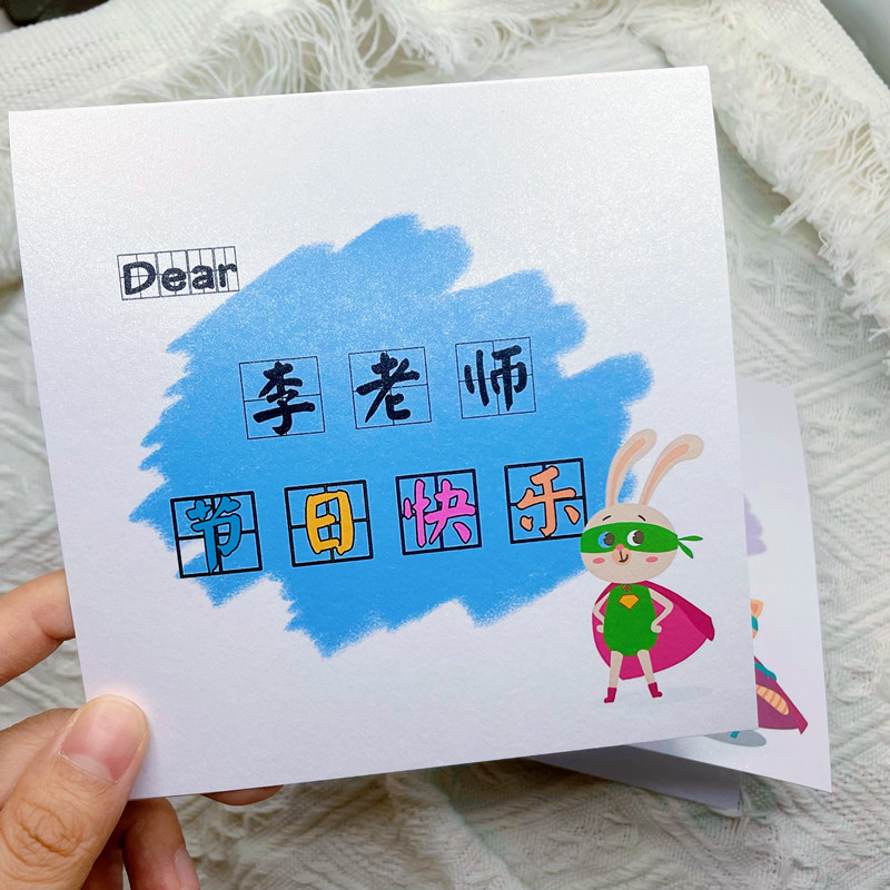 Children and students send teachers Teacher's Day creative cartoon children's small fresh custom photo text to write congratulatory cards