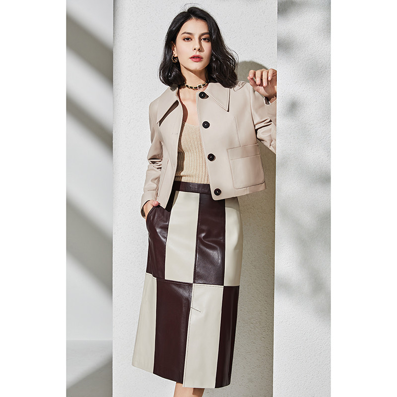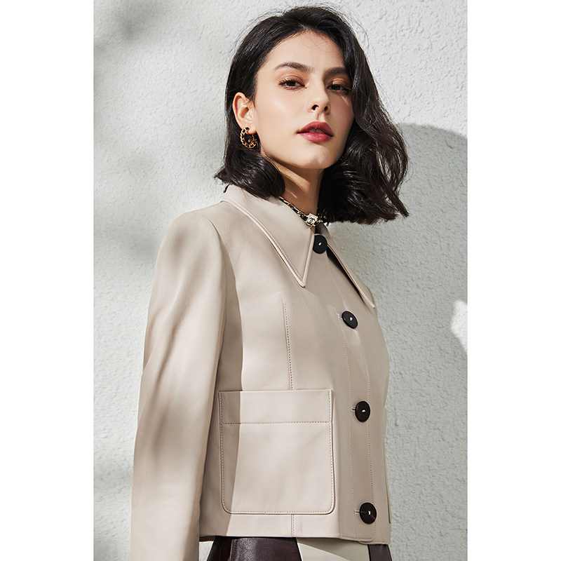 U N Q texture with temperament short sheep skin leather coat menu leather coat female