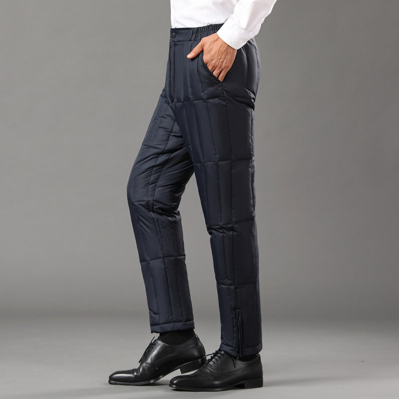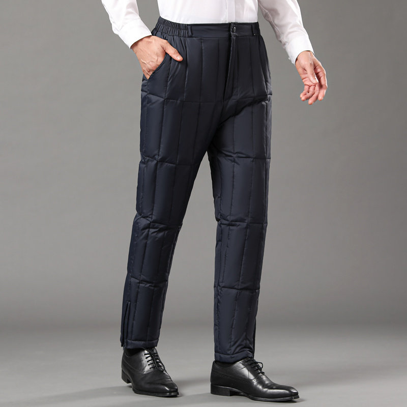 Hengyuan Xiang middle-aged and old aged down pants male and outside wearing thickened high waist dad's father white duck suede warm cotton pants big code-Taobao