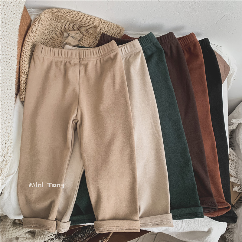 Vintage soft, warm and comfortable fleece children's stretchy and versatile leggings for boys and girls, warm, long pants, basic trousers, autumn and winter