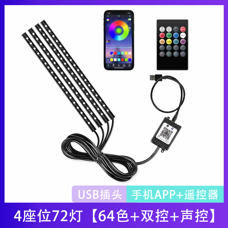 4 seats, 72 lights (64 colors, dual control, voice control) - USB head, 4 seats, 72 lights (64 colors, dual control, voice control) - Cigarette light head, 4 seats, 72 lights (64 colors, mobile APP