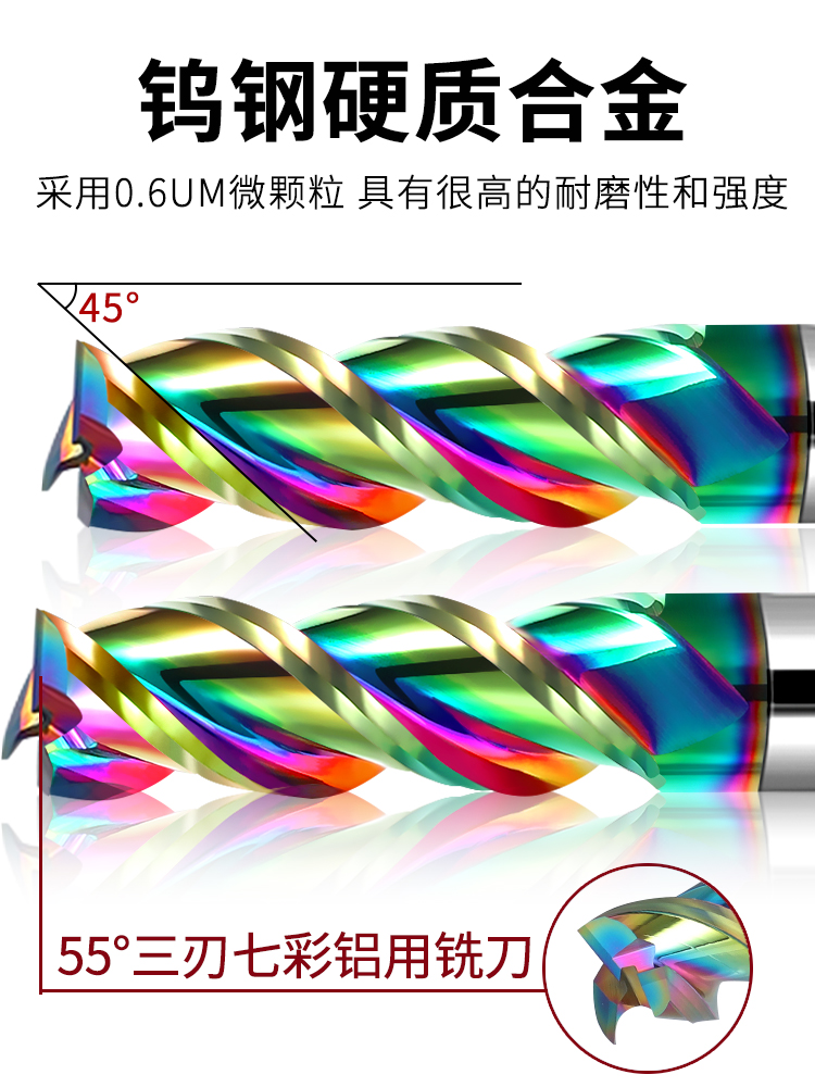 Weige 55-degree colorful aluminum milling cutter high-gloss 3-blade aluminum knife tungsten steel milling cutter coating gong cutter end milling cutter non-standard