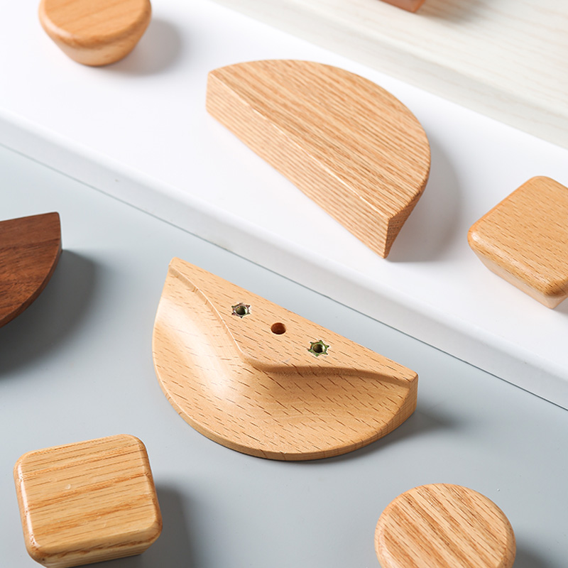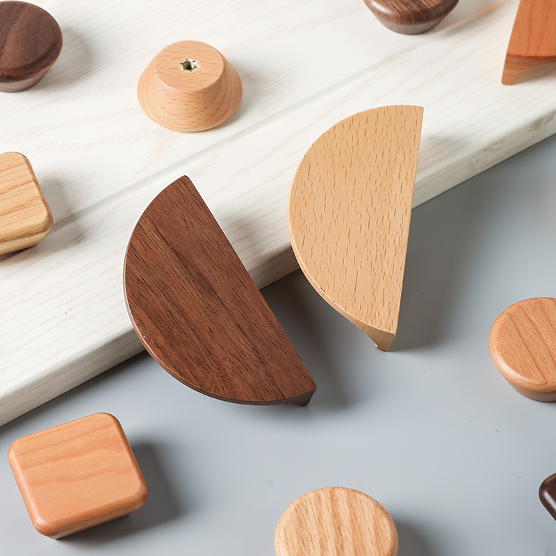 Japanese-style minimalist cabinet door drawer solid wood handle Nordic semi-circle wardrobe log color single-hole round wooden door handle