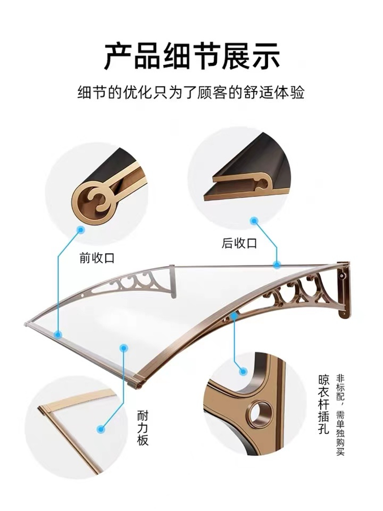 Aluminum alloy rain shed eaves home outdoor rain-proof sunshade rain shed window rain awning balcony door head silent rain
