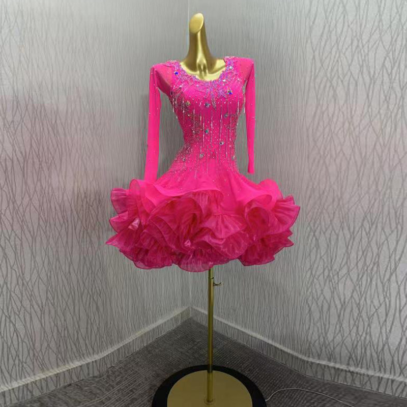 Latin dance competition skirt tube collar chacha dance perform imitation of Oka Lumba dance show suit large swing dress