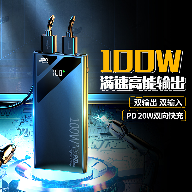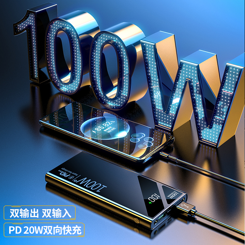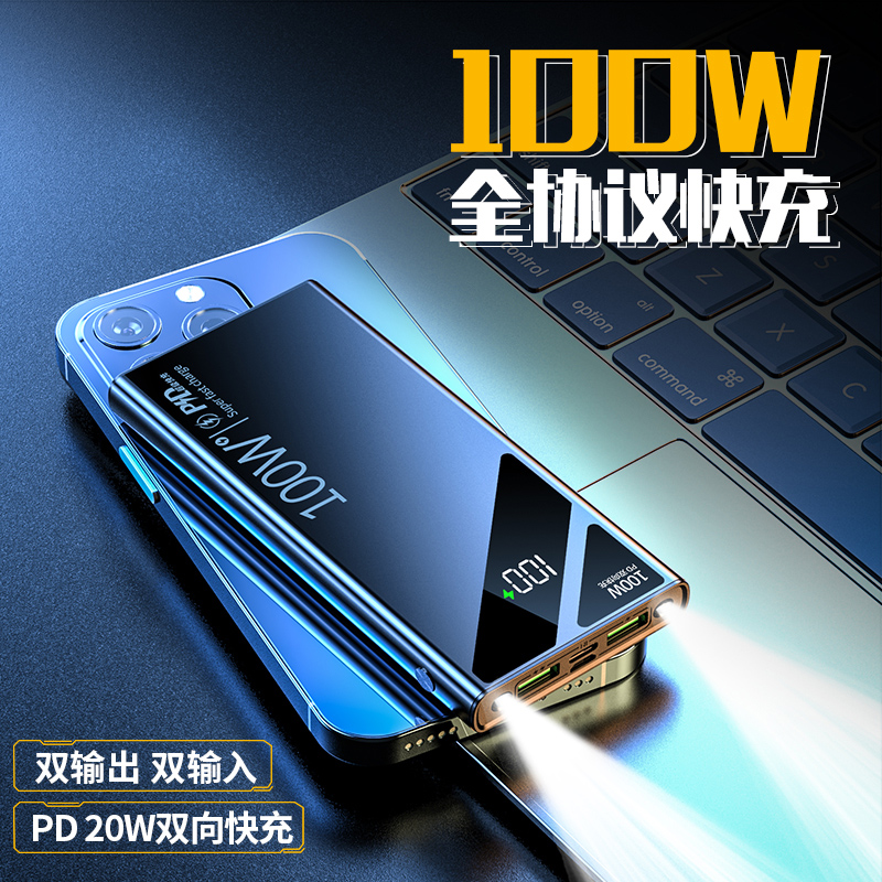 Super fast charge 100W power bank 50000 mAh ultra-large capacity 66W power bank 20,000 mAh ultra-thin compact and portable suitable for Apple PD20W Xiaomi Huawei vivo mobile phone special
