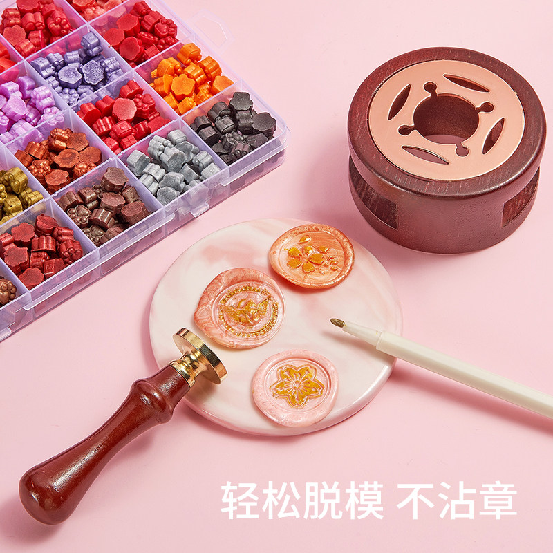 Retro fire paint seal set full set of cheap wax grain furnace backing plate Mars seal head handle novice tool set girl toy gift box seal envelope mouth