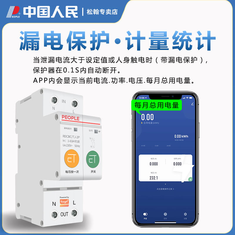 Graffiti WiFi Metering Earth Leakage Protector 220V Mobile Phone Remote Control Switch Timing Smart Breaker Home-Taobao