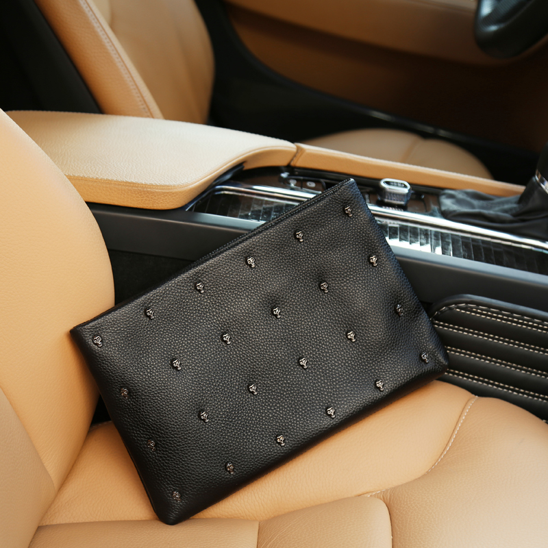 Hong Kong Leather Men's Pack 2022 new handbag skull leisure large capacity fashion handbag wallet